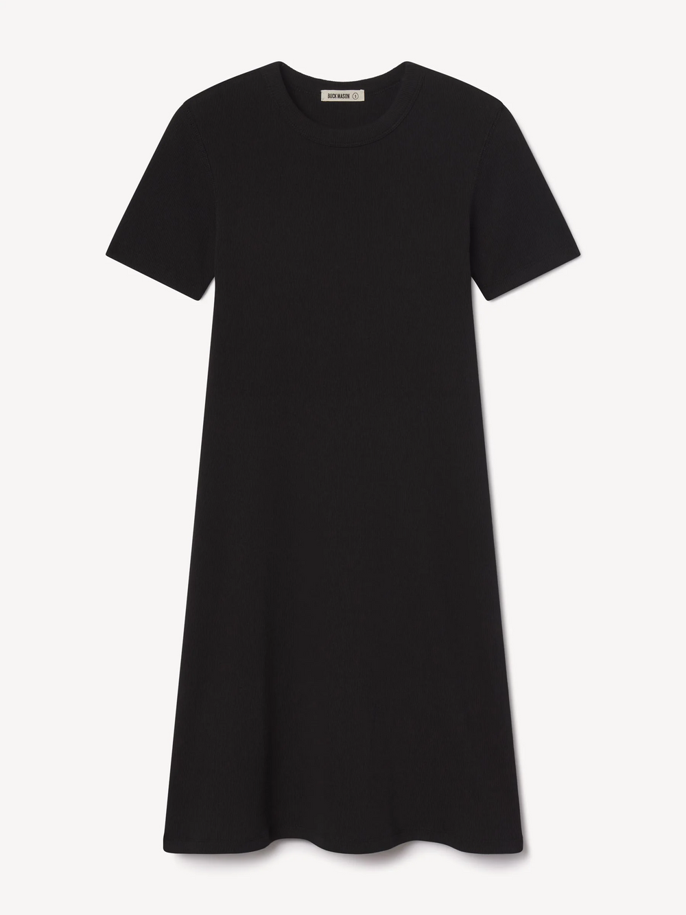 Short-sleeve mini dress with a 35” length in an 8 oz. blend of 90% cotton and 10% spandex, knit with a 2x2 ribbed structure for form-fitting stretch. Finished with 1x1 ribbing at the neckline and armholes. Garment washed for a soft feel.